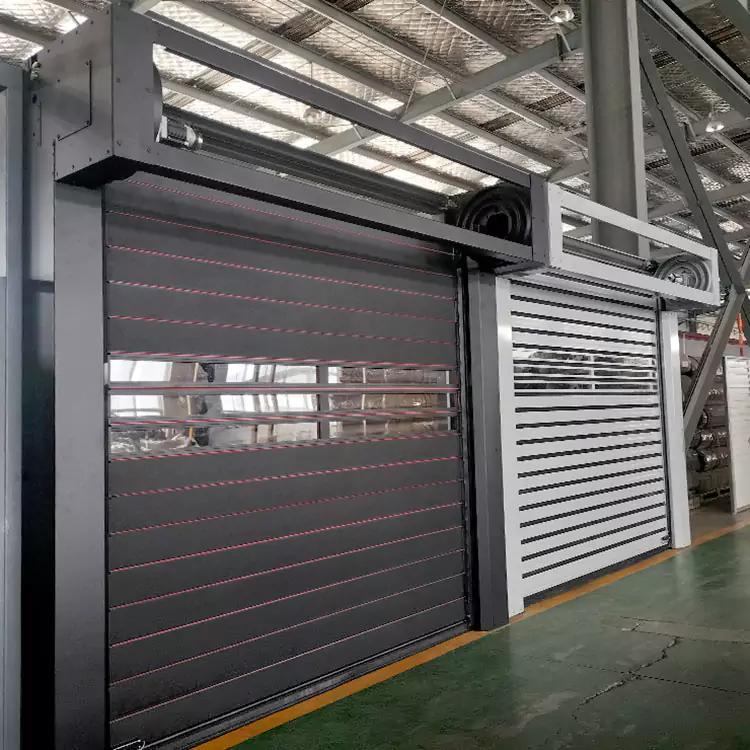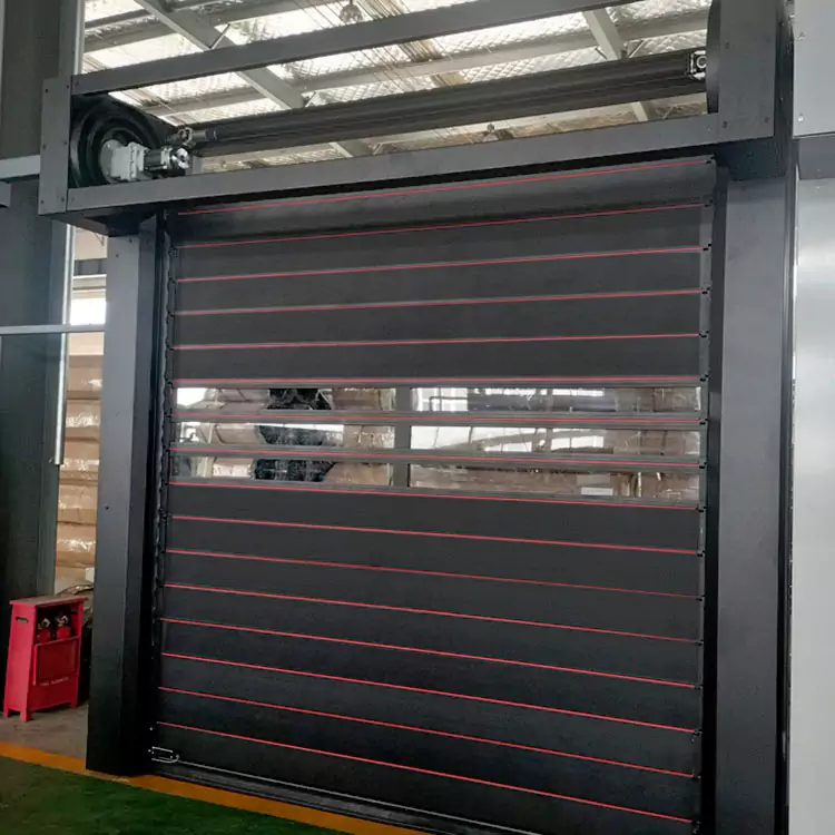 Користи се спирална кружна бесконтактна стаза, осигуравајући да панели остану неповезани један са другим док се завеса намотава. Овај дизајн спречава хабање и деформацију материјала панела, минимизира трење и омогућава да врата раде брзо и тихо. Врата се крећу глатко, брзо и стабилно, што их чини идеалним за операције високе фреквенције.