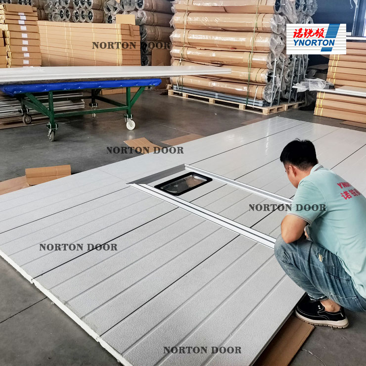 Секцијска индустријска врата произведена од стране Кингдао Нортон Враитх Тецхнологи Цо., Лтд. Саставни панели за врата израђени су из челичних плоча прекривених премиум или алуминијумским листовима, испуњеним еколошким полиуретанском пеном. Када панели на вратима достижу одређену ширину, уграђени или спољни ојачавајући ребра су запослени да би се осигурало дебљине врата и издржати нагли налет на силу 10 ветра. Прилагођени разноликим архитектонским структурама, ова врата усвајају различите механизме отварања, максимизирање коришћења простора на вратима. Врх, дно и бочне стране панела на вратима опремљени су висококвалитетним заптивним тракама, обезбеђујући поуздано заптивање између панела за врхунску непропусност. Величина и висина врата могу се прилагодити да се прилагоди различитим теретним величинама и транспортним возилима. Поред тога, врата се могу унапред подешити да остану на одређеном углу када је отворен, угоститељство за разнолике радног тока и просторне распореде.