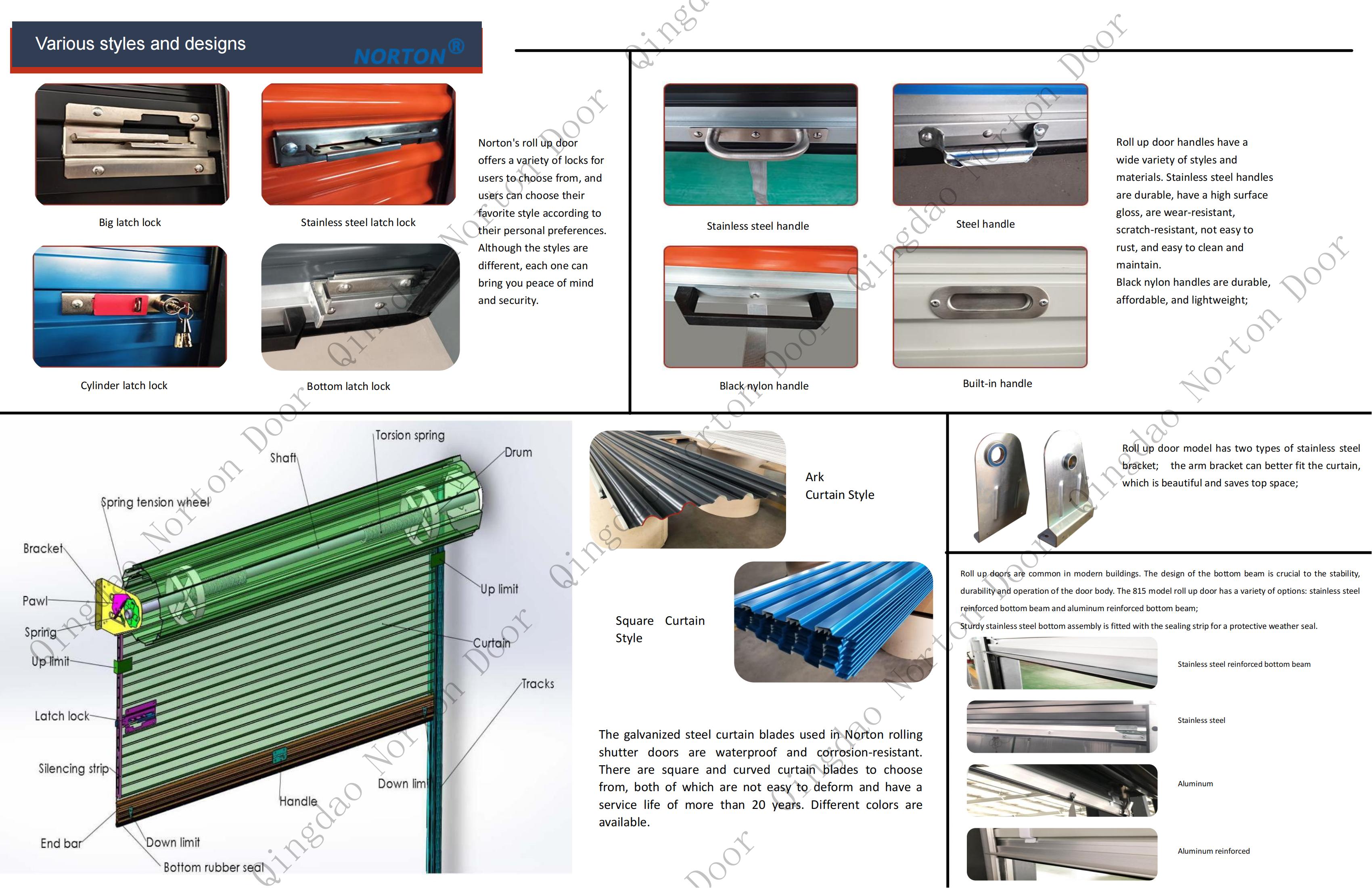 Ручно прилагођено само складиштење челичне ваљане врата садрже врата, водичи, померање осовине, опруга и ручних оперативних уређаја (нпр. Ручка или ланац) за подизање и самостално складиштење. Садржи једноделну завесу са високим чврстом чврстоћом са кукама отпорне на ветрое са обе стране, обезбеђујући стабилност завесе у ветровитим условима. Врата се уредно ваљају на осовину за помицање, очување простора. Опремљен је анти-прстијим уређајима и сигурносним бравама, гарантује сигурну употребу. Ручни рад Елиминише потребу за електричном енергијом, штедећи енергијом. Доступан је низ боја, текстура и образаца за персонализацију.
